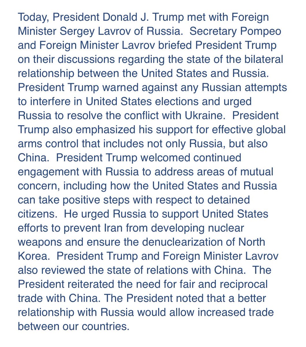 Trump also just met the Russian Foreign Minister and reportedly raised North Korea. One key problem is that the Chinese and Russian governments have encouraged the US to ease sanctions on North Korea, as part of a step by step denuclearization process. But if Kim continues to violate UN resolutions -- with more missile and nuclear tests -- the countries carrying Kim's water may be willing to change course.
