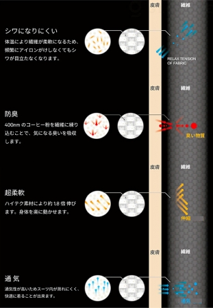 生地に織り込まれた400nmのコーヒーの出し殻の屑が消臭機能を発揮。