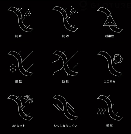 もちろん、撥水、防臭、UVプロテクトといったスーツの特徴を備えています。