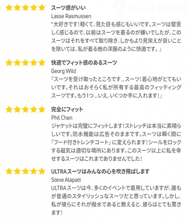 | 株式会社Glotureが現在実施中のクラウドファンディング「ULTRAスーツ2.0」は、残り約57時間でキャンペーンを終了します。レインコート顔負けの撥水機能が備わったハイテクスーツがお得な価格で手に入るのは今だけなので、この機会にお見逃しのないように! |