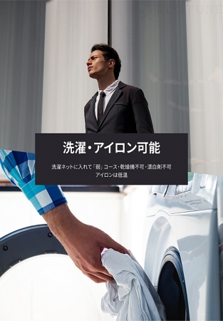 - 30度以下の低温で、洗濯ネットに入れて、なるべく似た色の洋服と一緒に洗濯してください。