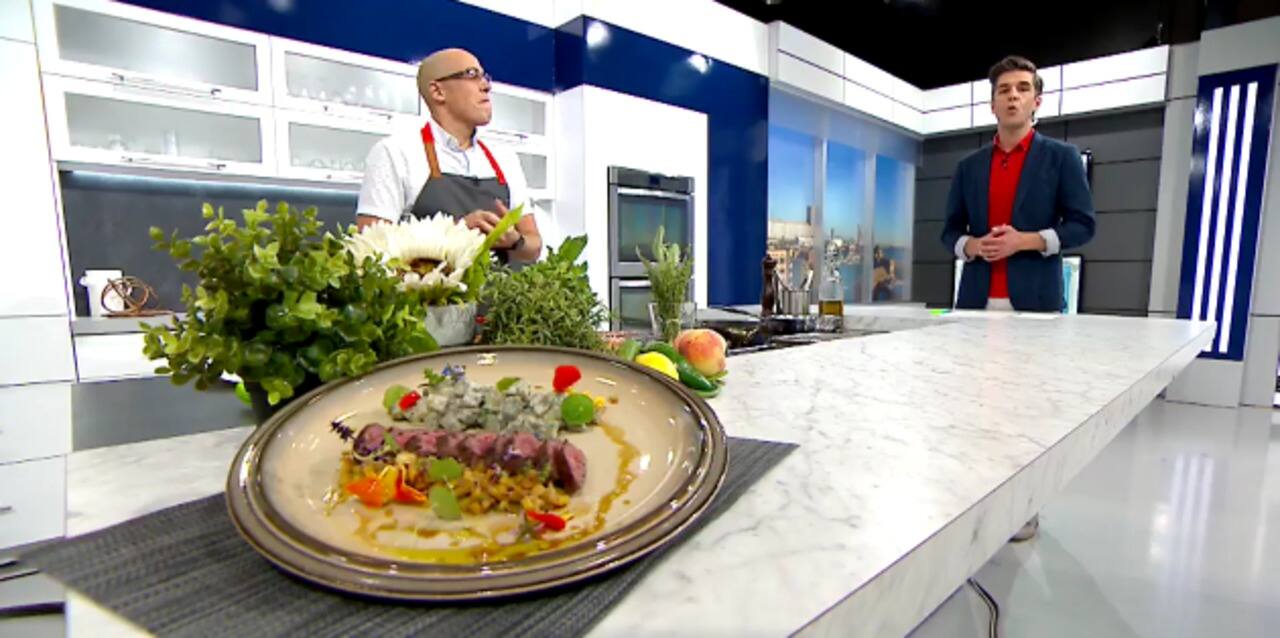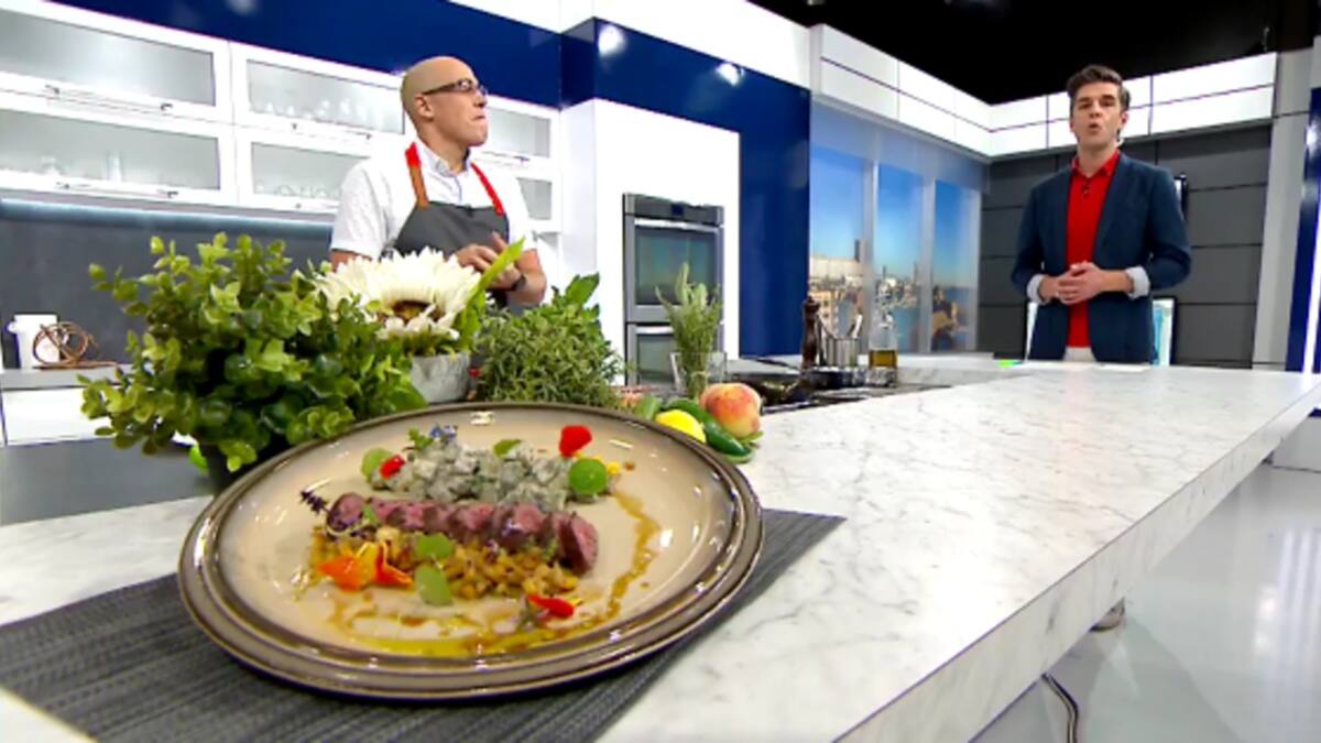 Présenter l’onglet préalablement tailler en tranche, sur une généreuse portion de chutney accompagné de sa salade de concombres au Zaatar. Ajouter un filet de glace de viande et d’huile verte ainsi que quelques fleurs du jardin.