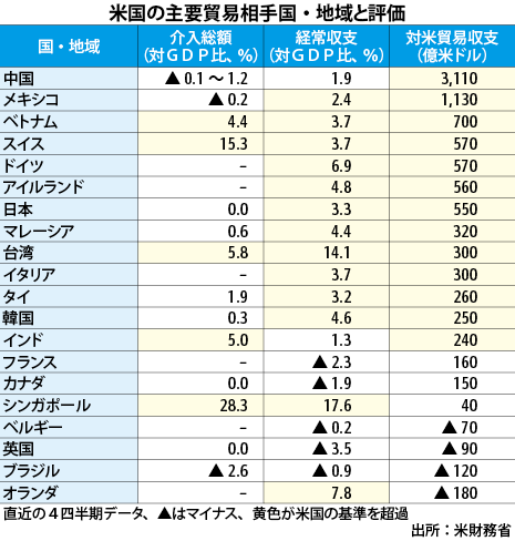 米財務省は16日、主要な貿易相手国・地域の通貨政策を分析した最新の外国為替報告書を発表した。ベトナム、スイス、台湾の3カ国・地域が自国通貨を安値に誘導している可能性に言及しつつも、証拠は不十分として、いずれも制裁の検討対象となる「為替操作国」には認定しなかった。…