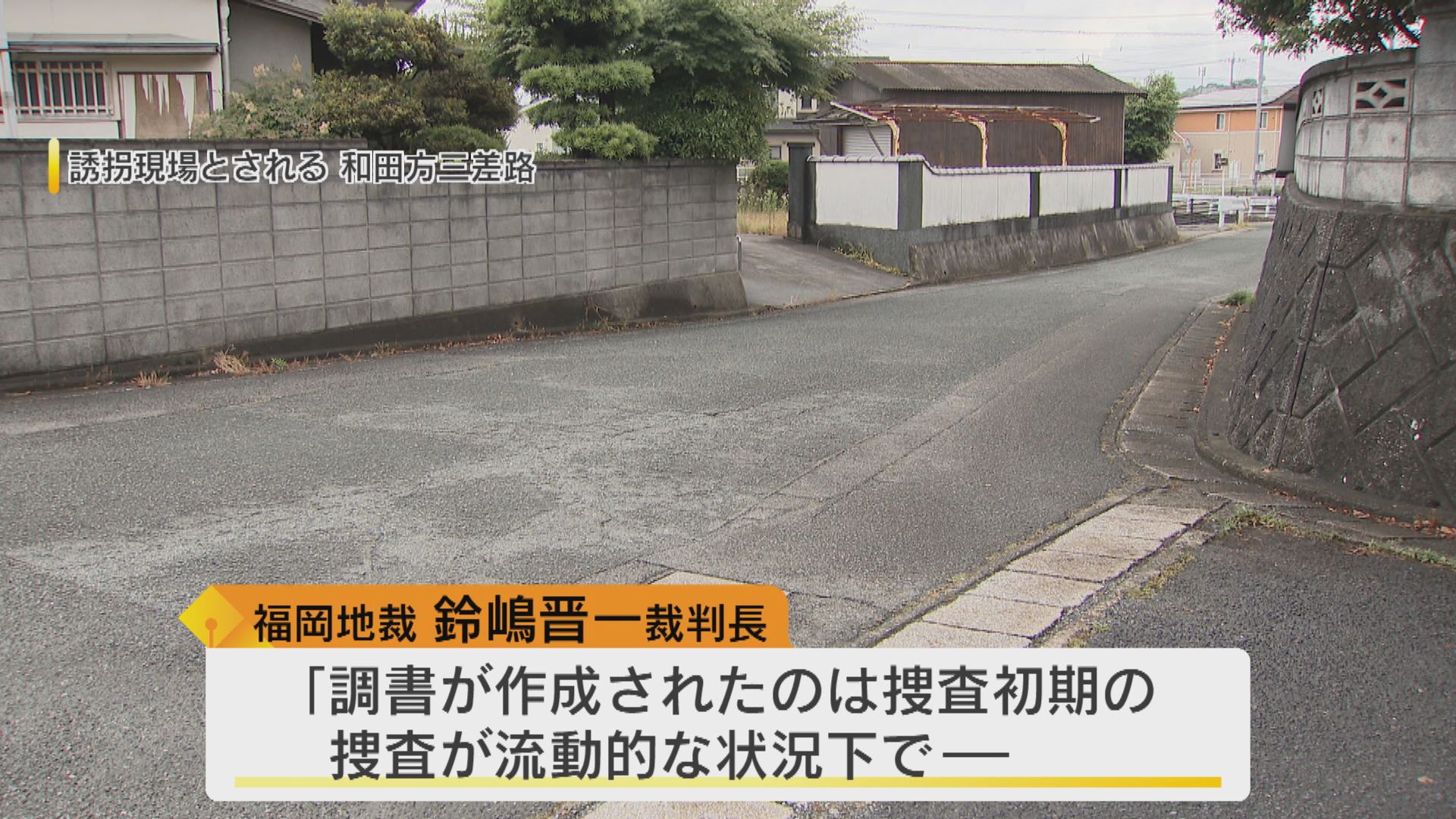 「確定判決が“誘拐場所”としたのが、こちらの三差路です。ここで最後に女の子2人を目撃したとされる女性の証言が、きょうの再審の判断の争点となりました。」